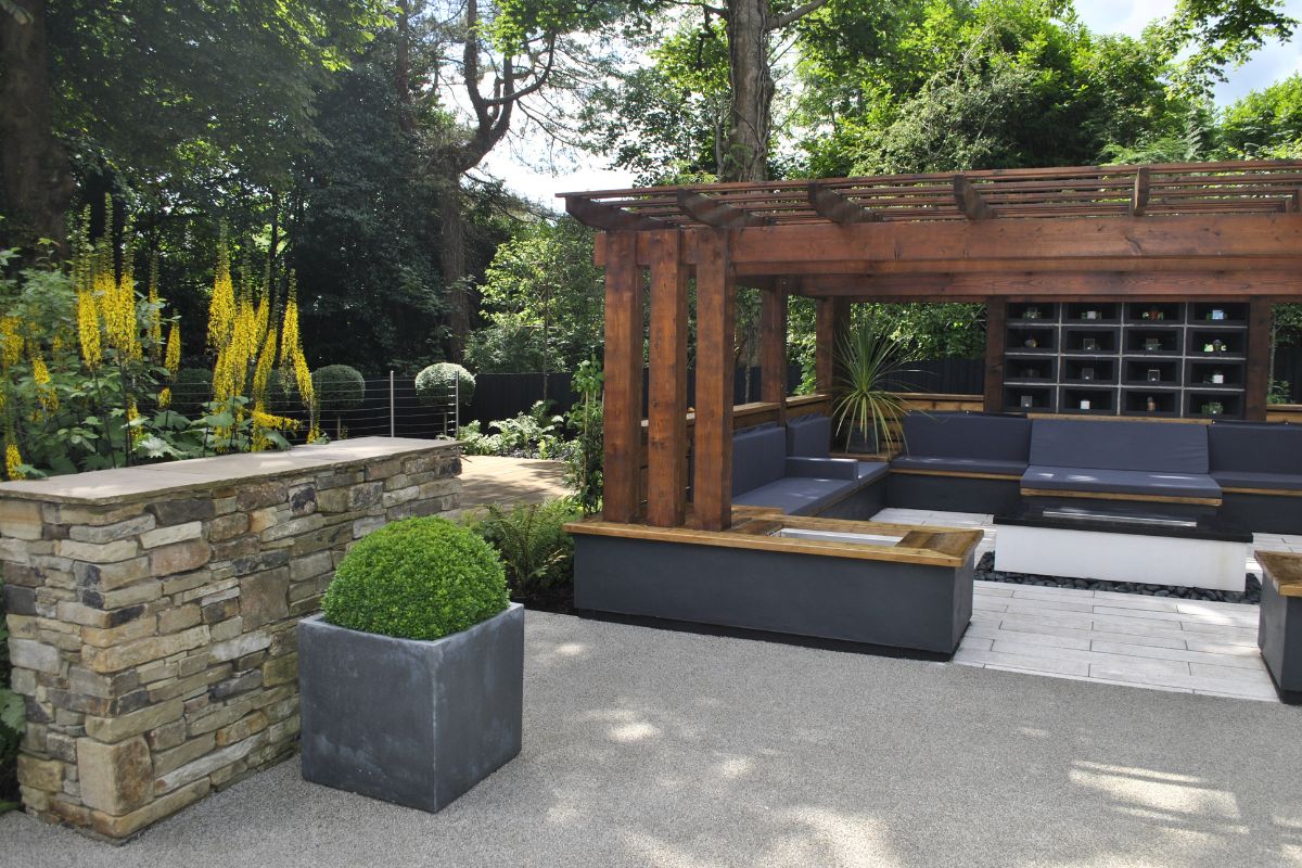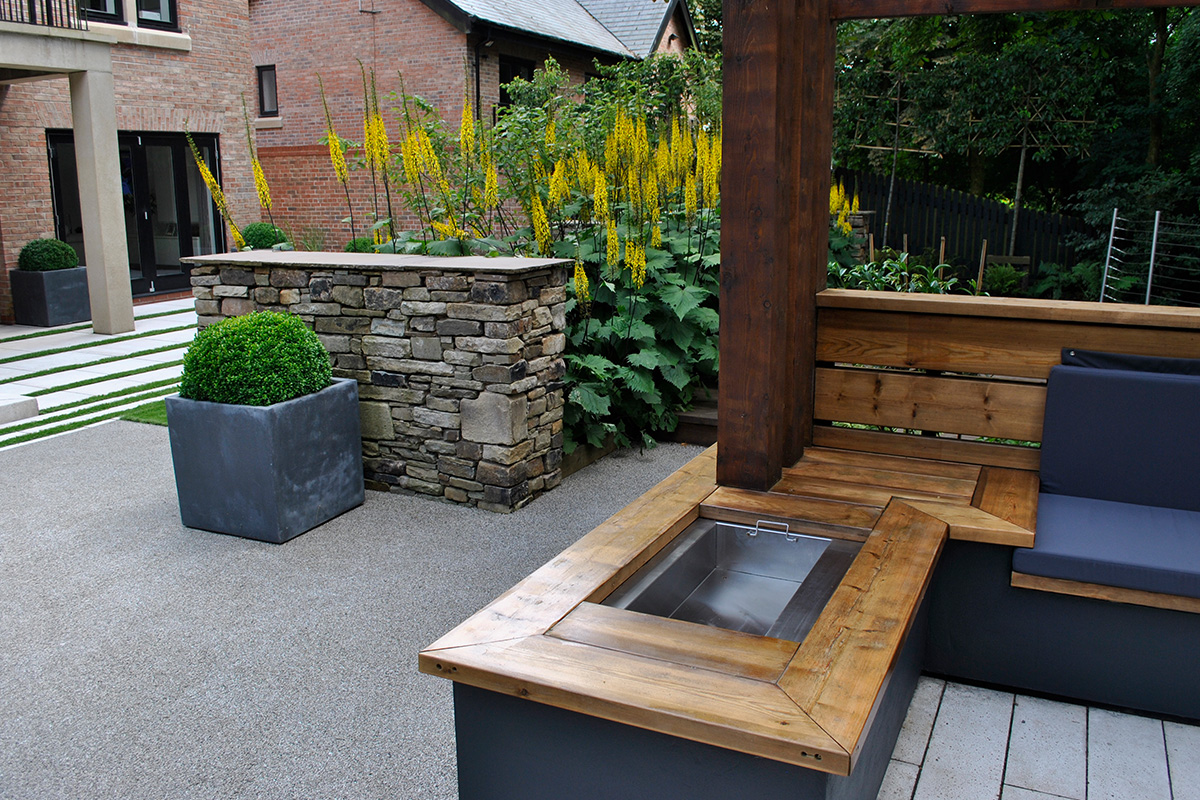 Soon after completing the garden, Ian received a phone call from the creative director of ITV’s Love Your Garden. They were researching local garden designers to find examples of how they had created privacy and intimacy within outdoor spaces. They were particularly interested in how we had created the fire pit area and the use of pleached trees for this new build garden design.