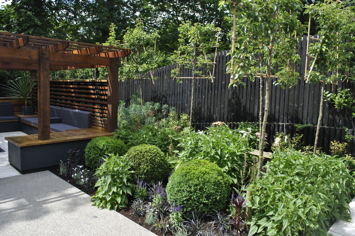 Our first task was to make the garden appear bigger, which meant combating the shady areas and the boundary lines. We painted the existing fencing black, which created a sleek, modern appearance and expanded the landscape. Additional privacy was provided by planting pleached trees across these boundary lines.